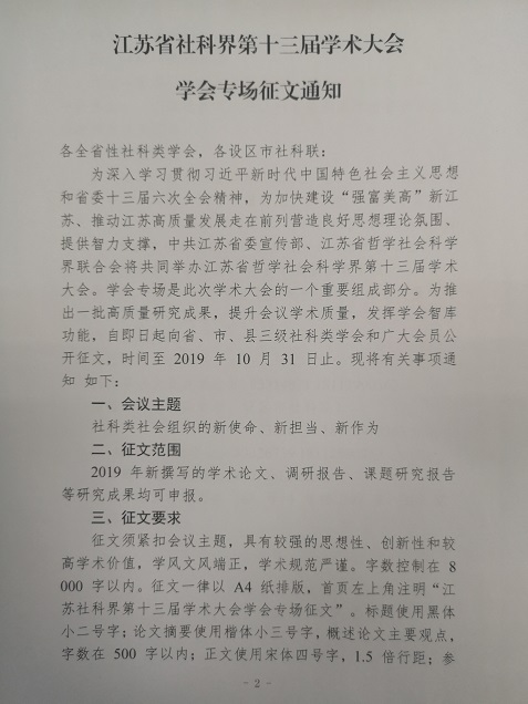 关于转发《江苏省社科界第十三届学术大会学会专场征文通知》的通知
