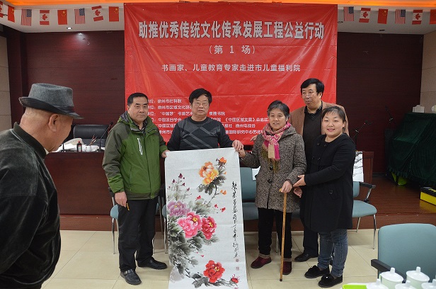 为贯彻落实中央两办1月底印发的《关于实施中华优秀传统文化继承发展工程的意见》,发挥社科学会人才优势,3月5日下午,市社科联与市区域文化研究会在市社会(儿童)福利院举行“学雷锋榜样 做徐州好人”助推优秀传统文化传承发展工程公益活动。研究会邀请了“中国梦”书画艺术研究院十余位书画家现场挥毫,创作了70余幅书画作品,赠送给福利院,传播中华敬老爱幼的优秀传统美德。之后,区域文化研究会泉德书院儿童教育专家与书画家们走访了福利院孩子和养老院老人,宣传中华优秀传统文化,倡导快乐生活健康人生,给老人和孩子送上温馨的祝福。活动现场,养老院69岁邢阿姨有感而发地唱起了《学习雷锋好榜样》。